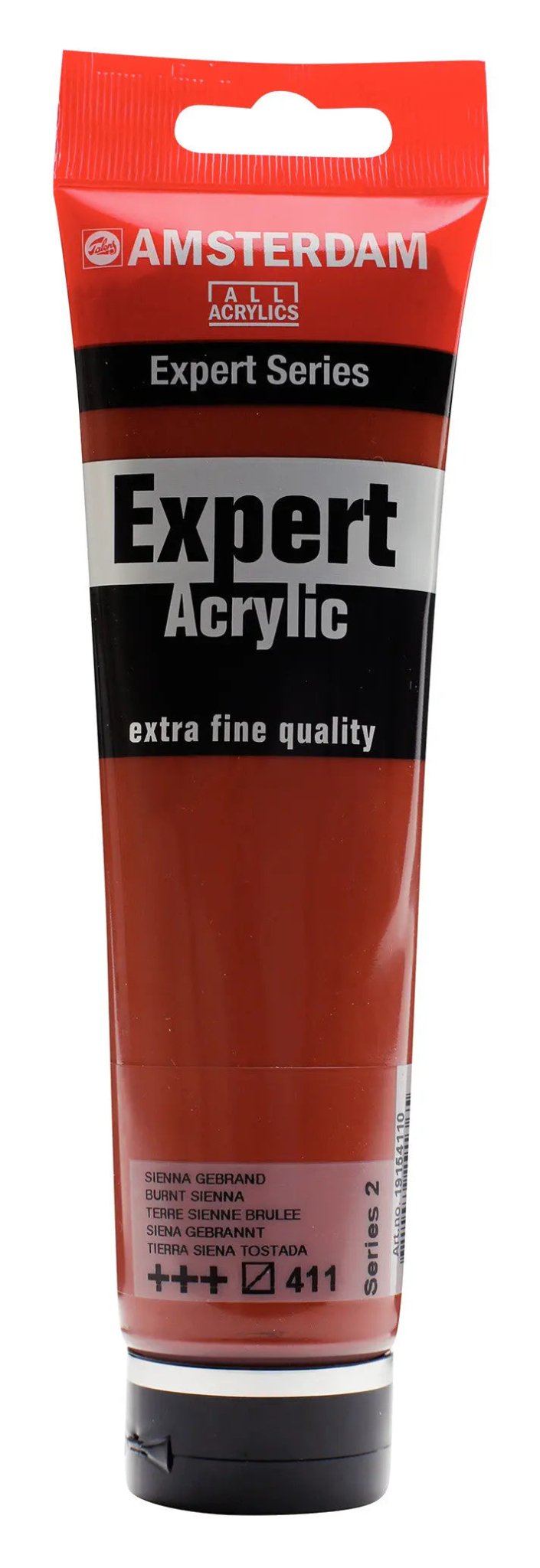 Die Acrylfarbe Sienna Gebrannt (411) aus der Amsterdam Expert Series ist eine halbdeckende Farbe mit hervorragender Lichtechtheit (+++).