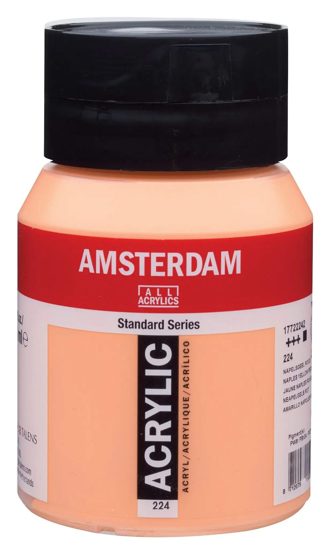 Erleben Sie mit der Amsterdam Standard Series Acrylfarbe in der großzügigen 500 ml Flasche die perfekte Kombination aus Qualität und Farbintensität. Die Farbe Neapelgelb Rot (224) besticht durch ihre cremige Konsistenz und hervorragende Deckkraft, die selbst auf dunkleren Untergründen ein brillantes Ergebnis garantiert.