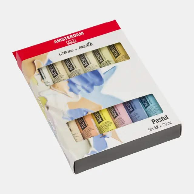 Dieses Set ist ein unverzichtbares Werkzeug für Künstler, Hobby-Maler und alle, die mit Acrylfarben in sanften Pastelltönen experimentieren möchten. Bringen Sie Ihre Kreativität zum Ausdruck und genießen Sie die einfache Handhabung dank der ausgezeichneten Fließeigenschaften der Amsterdam Acrylfarbe.