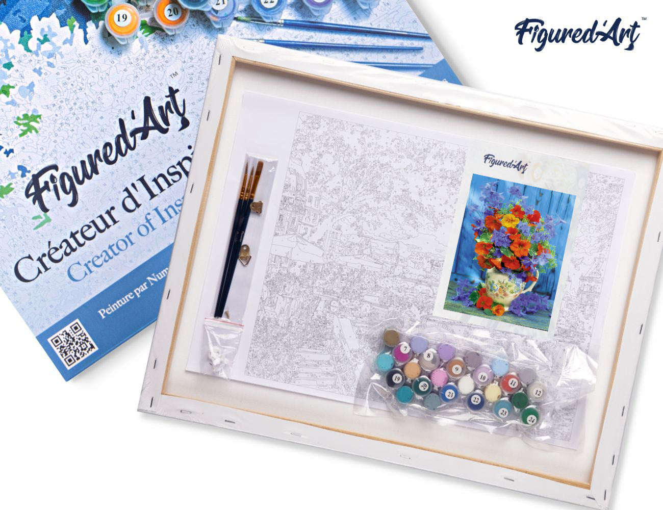 Malen nach Zahlen 40x50cm auf Keilrahmen gespannt Figured’Art Töpferwaren und Blumen