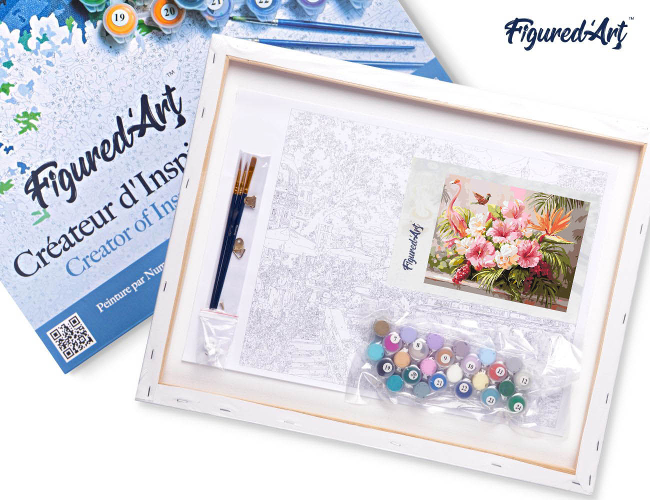 Malen nach Zahlen 40x50cm auf Keilrahmen gespannt Figured’Art Hibiskus und rosa Flamingo