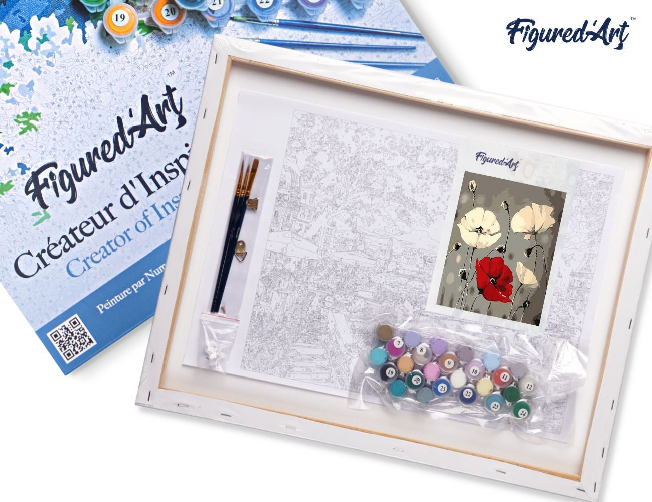 Malen nach Zahlen 40x50cm auf Keilrahmen gespannt Figured’Art Rote und weisse Blumen