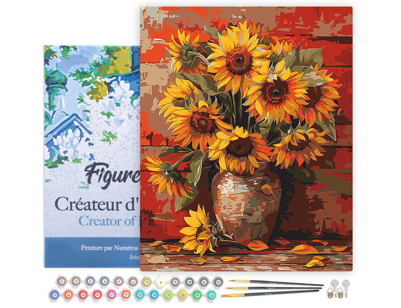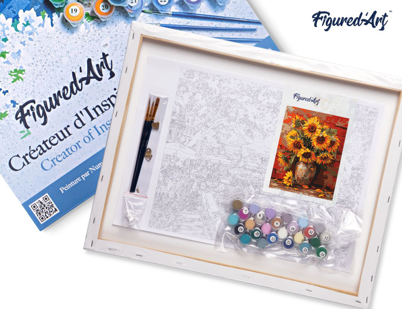 Malen nach Zahlen 40x50cm auf Keilrahmen gespannt Figured’Art Vase mit herbstlichen Sonnenblumen