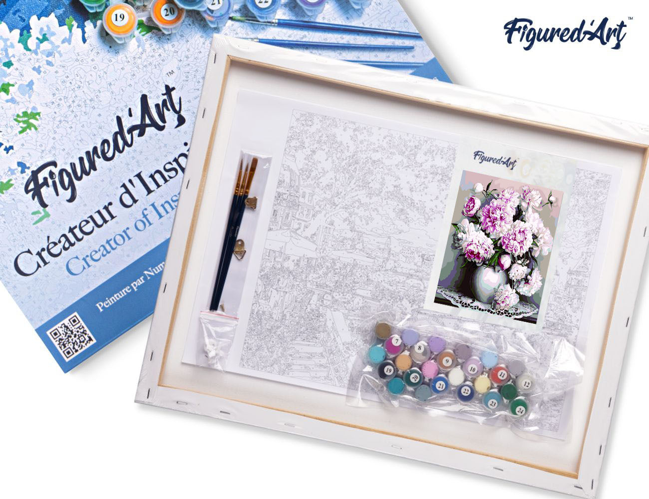 Malen nach Zahlen 40x50cm auf Keilrahmen gespannt Figured’Art Vase Pfingstrosen