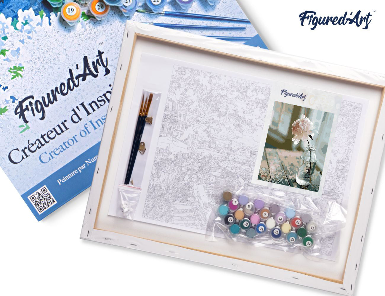 Malen nach Zahlen 40x50cm auf Keilrahmen gespannt Figured’Art Töpferwaren und Blumen