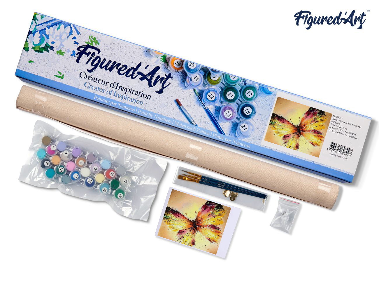 Malen nach Zahlen 40x50cm ohne Keilrahmen Figured’Art Brillante Farben Schmetterlinge