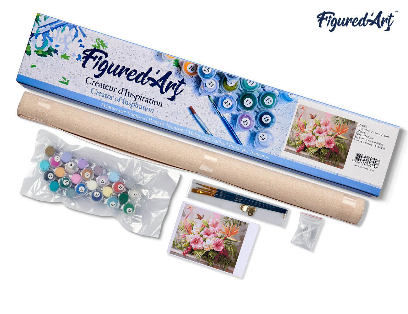 Malen nach Zahlen 40x50cm ohne Keilrahmen Figured’Art Hibiskus und Flamingo