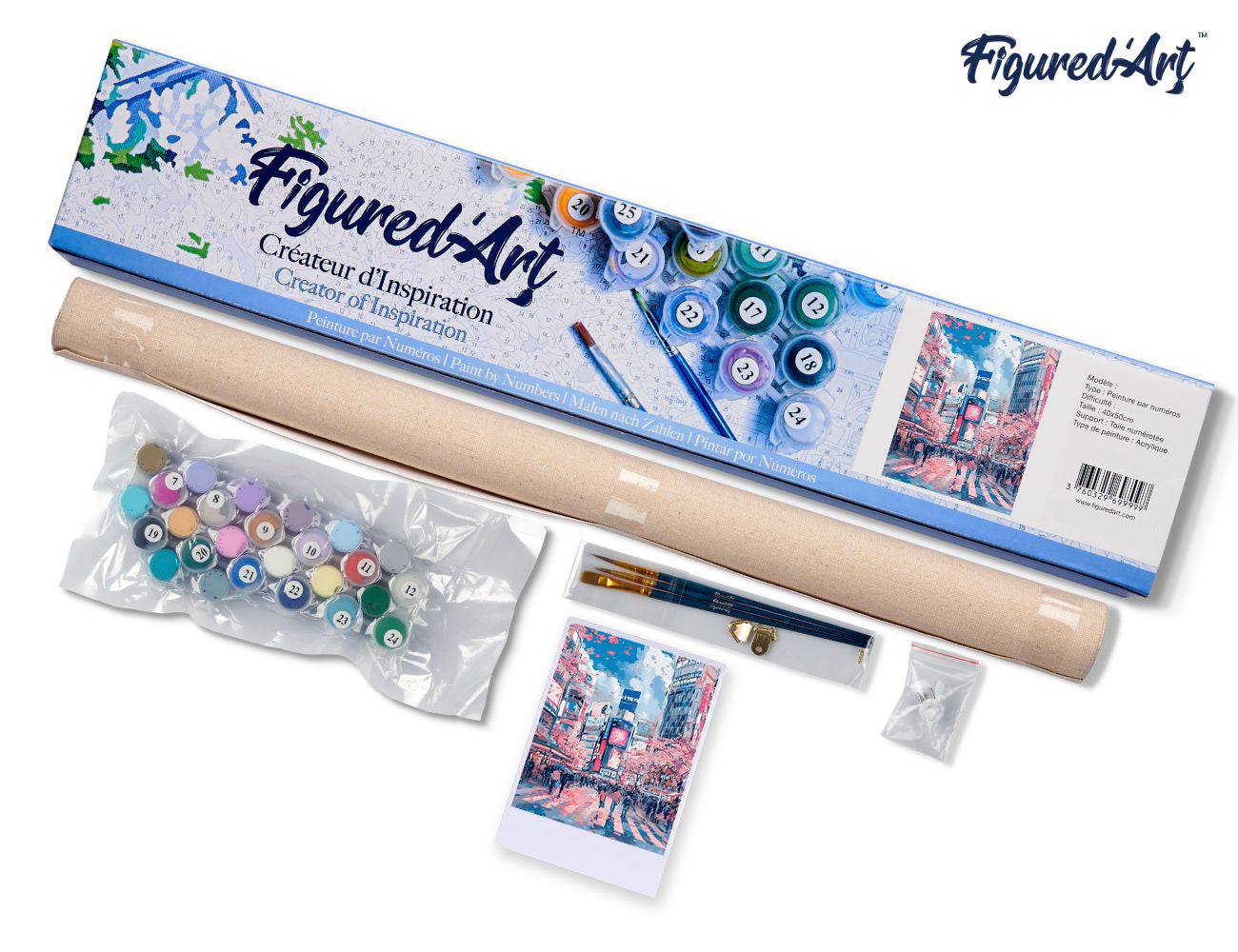 Malen nach Zahlen 40x50cm auf Keilrahmen gespannt Figured’Art Kirschblüten in Shibuya