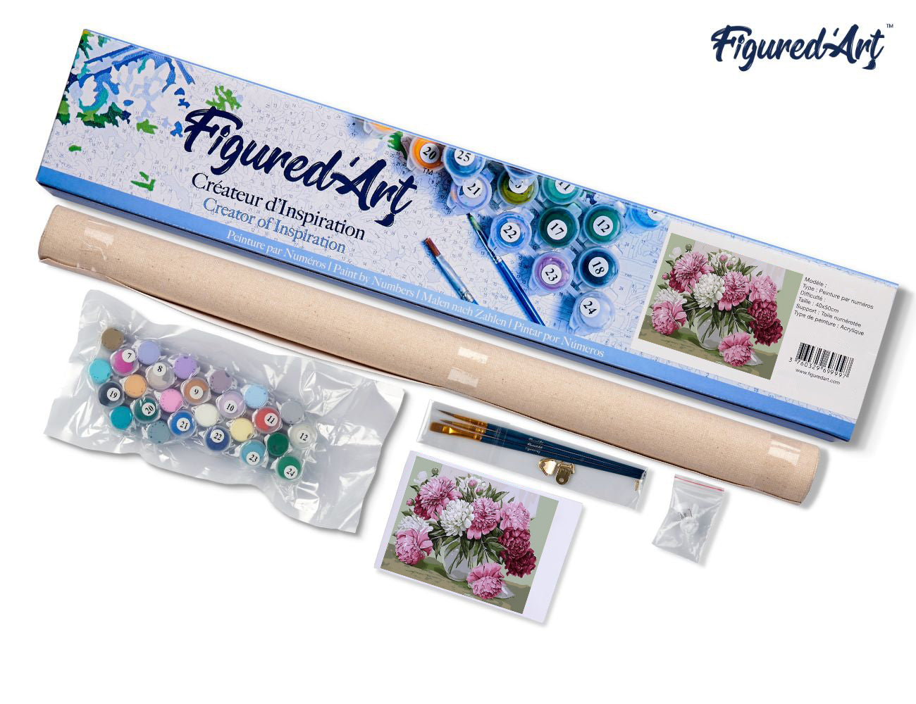Figured’Art steht für renommierte Malen-nach-Zahlen-Lösungen, die entspanntes Kreativ-Erlebnis mit hochwertigem Endergebnis verbinden. Dieses komplette Set liefert alles, was Sie brauchen, um ein romantisches Pfingstrosen-Meisterwerk zu schaffen.