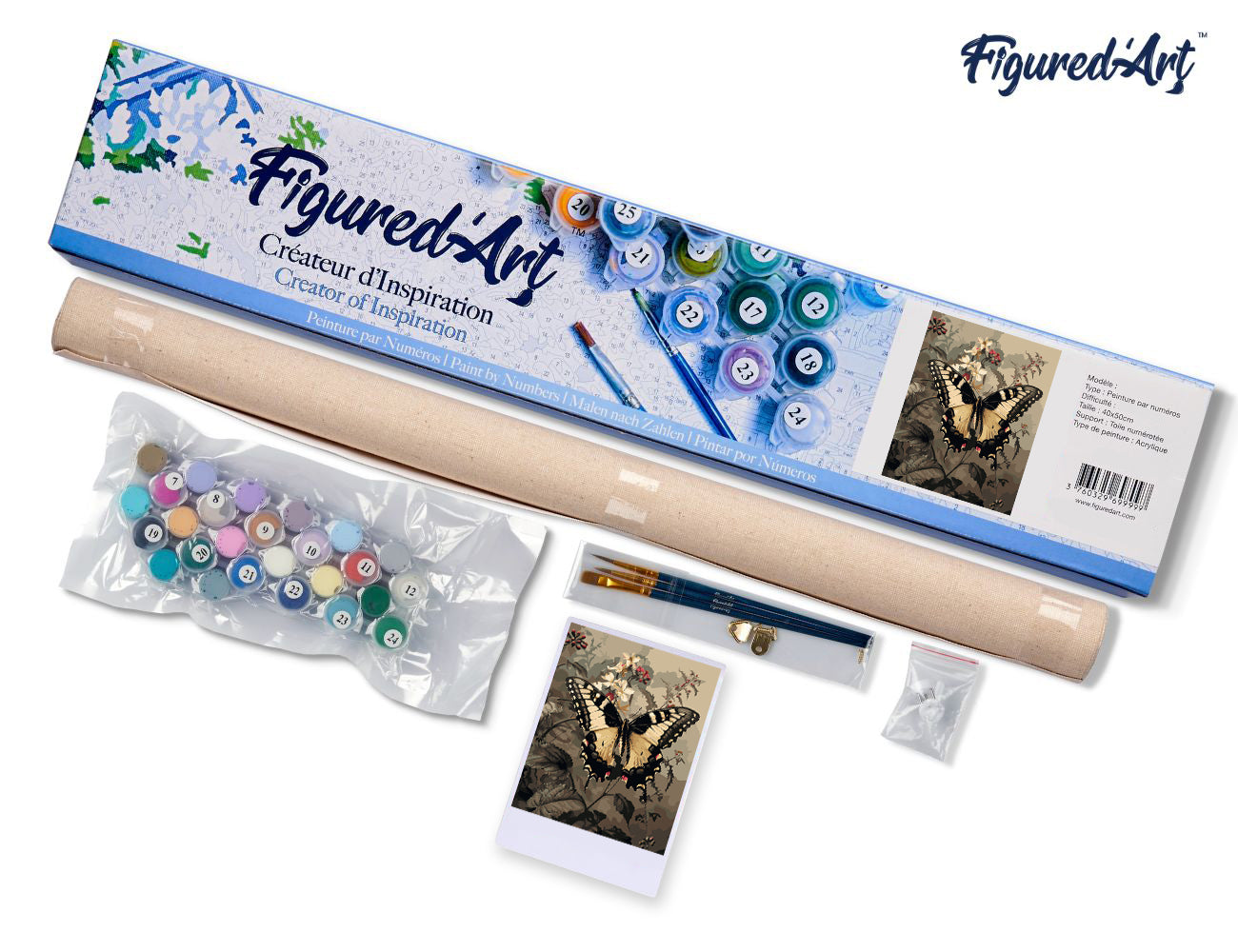 Malen nach Zahlen 40x50cm ohne Keilrahmen Figured’Art Schwalbenschwanz und weiße Blumen