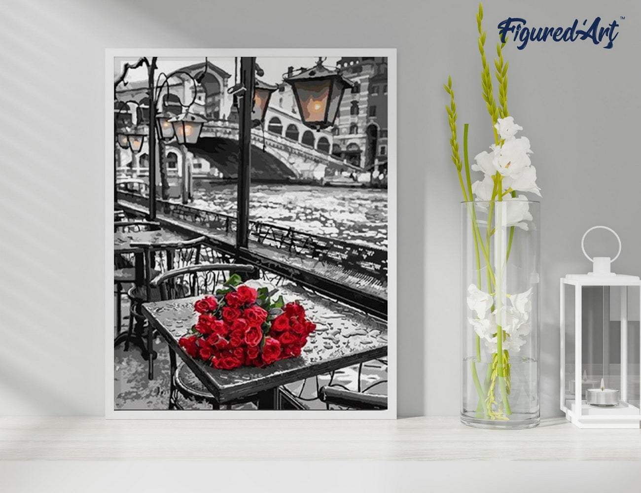 Malen nach Zahlen 40x50cm ohne Keilrahmen Figured’Art Terrasse und Blumenstrauss