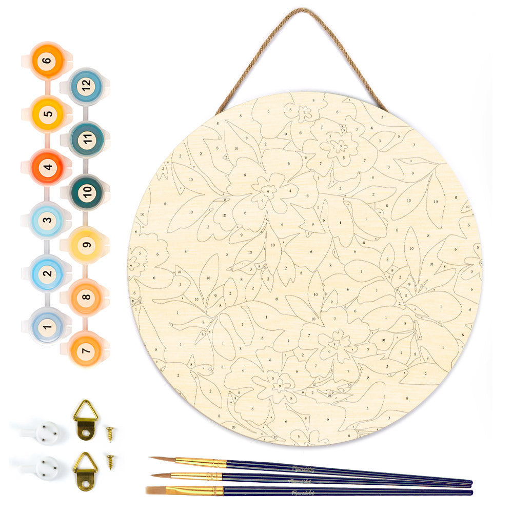 Malen nach Zahlen auf Holzscheibe – Blumenmuster
