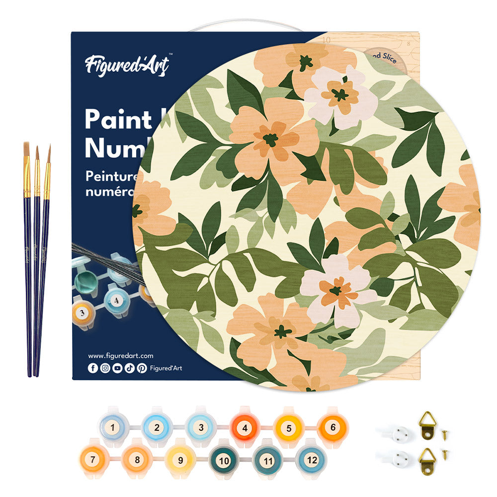 Malen nach Zahlen auf Holzscheibe – Blumenmuster von Figured'Art bietet eine beruhigende kreative Auszeit für Zuhause. Dank klarer Anleitung gelingen beeindruckende Ergebnisse – auch ohne Vorerfahrung – und Ihr fertiges Kunstwerk wird zu einem einzigartigen Dekorationsstück.