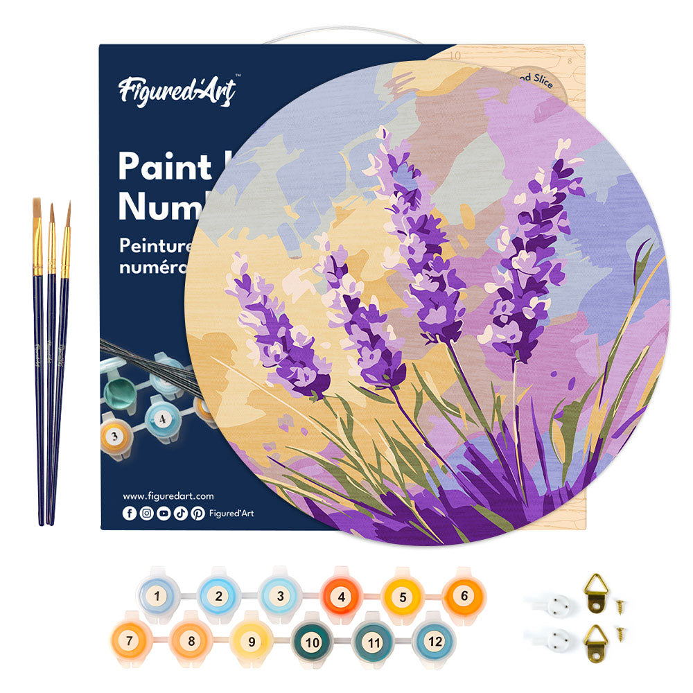 Entdecken Sie Entspannung pur mit der Malen nach Zahlen auf Holzscheibe – Lavendel von Figured'Art. Dieses Set lädt zu einer ruhigen Kreativpause ein: klare Anleitung, kein Vorwissen nötig, und eine warme, wohnliche Ausstrahlung durch die natürliche Holzoberfläche. Das nachhaltige Set verbindet handwerkliche Freude mit stilvoller Dekoration und schenkt Ihnen ein langlebiges Kunstwerk für Ihr Zuhause.