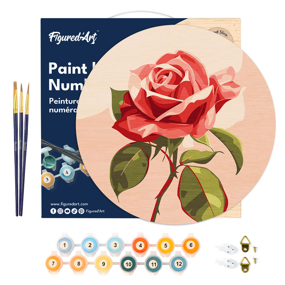 Genießen Sie entspannte, kreative Auszeiten mit dem Malen nach Zahlen auf Holzscheibe – Rote Rose von Figured'Art. Dieses Set verwandelt ruhige Abende in eine stilvolle, personalisierte Wohn-Dekoration und bietet gleichzeitig eine nachhaltige Freude, die lange anhält. Die Rote Rose fungiert als eleganter Blickfang und verleiht jedem Raum eine raffinierte Note.
