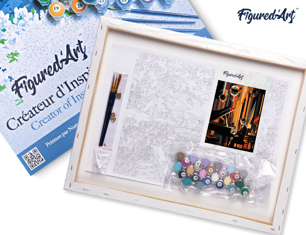 Figured’Art Malen Nach Zahlen Set 40x50 cm Auf Keilrahmen Art-Deco Mann Am Klavier