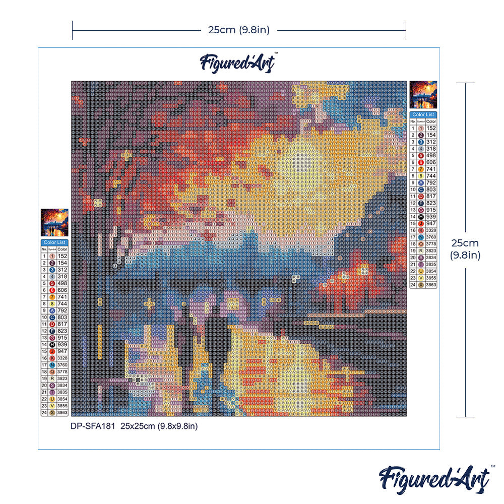 Mit dem Mini Diamond Painting 25 x 25 cm ohne Keilrahmen Romantische Nacht präsentiert Figured'Art ein kompaktes, entspanntes DIY-Kunstprojekt. Dieses Set enthält alles, was Sie brauchen, um ein funkelndes Kunstwerk zu erschaffen – direkt einsatzbereit und sofort loslegend.