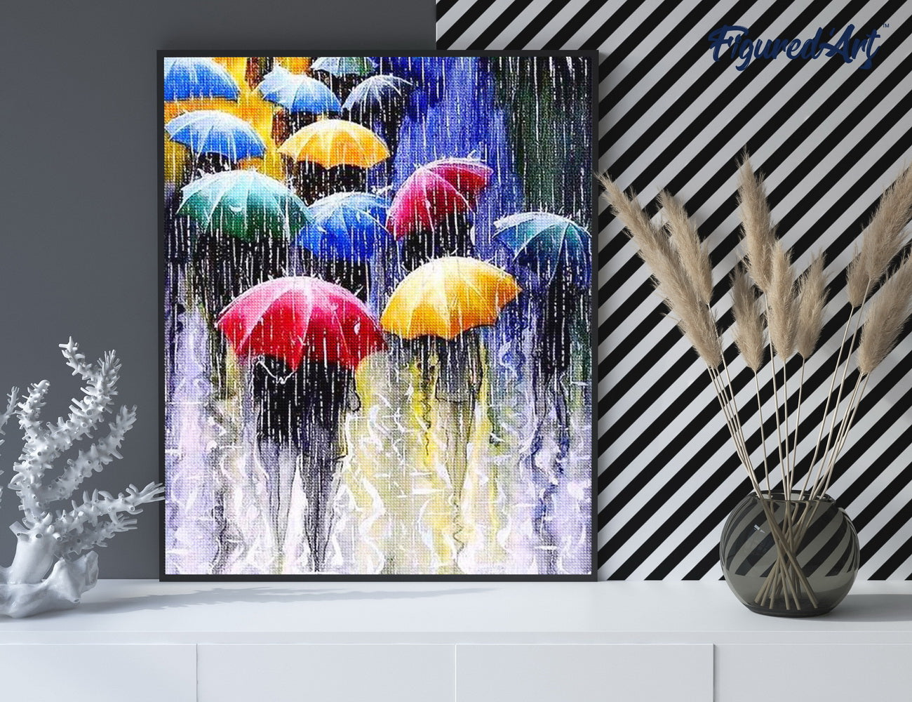 Diamond Painting 40x50 gerollte Leinwand Figured’Art Regenschirme im Regen