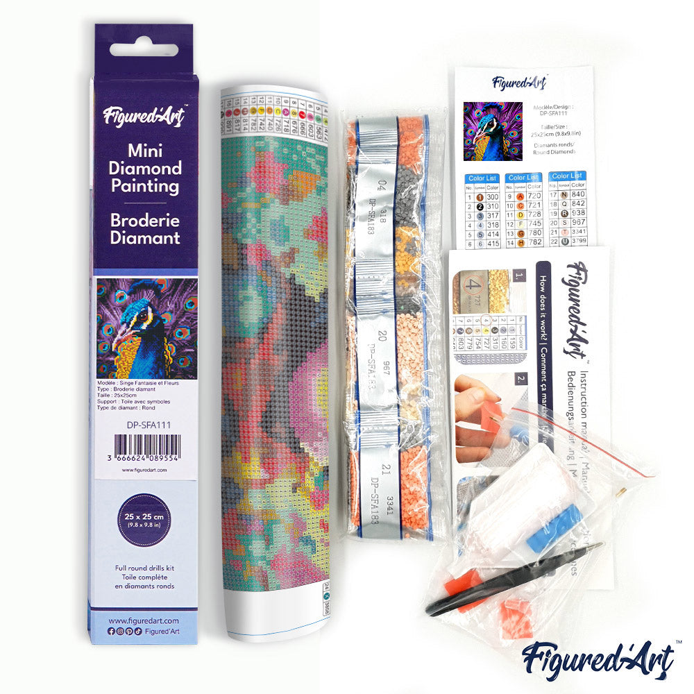 Entdecken Sie das Mini Diamond Painting Set von Figured'Art – eine elegante, kompakte Kunstform für ruhige Stunden voller Kreativität. Die 25 x 25 cm große, gerollte Leinwand ist selbstklebend und bereits nummeriert, damit Sie sofort loslegen können. Der Anmutige Pfau wird mit hochwertigen Materialien und sorgfältiger Vorarbeitung zu einem beeindruckenden Meisterwerk – perfekt für Ihr Zuhause oder als stilvolles Geschenk.