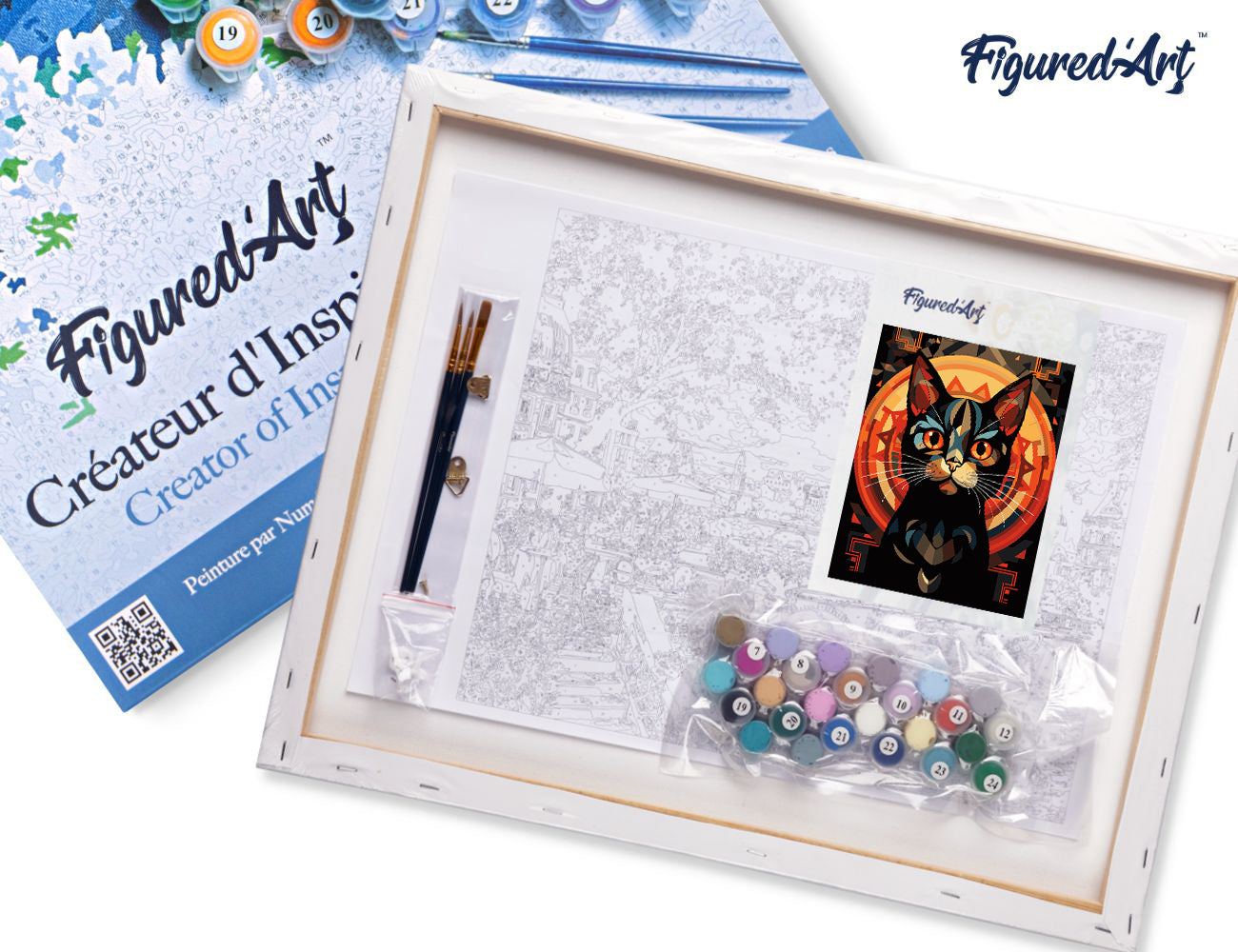 Malen nach Zahlen 40x50cm auf Keilrahmen gespannt Figured’Art Art-Deco-Schwarze Katze