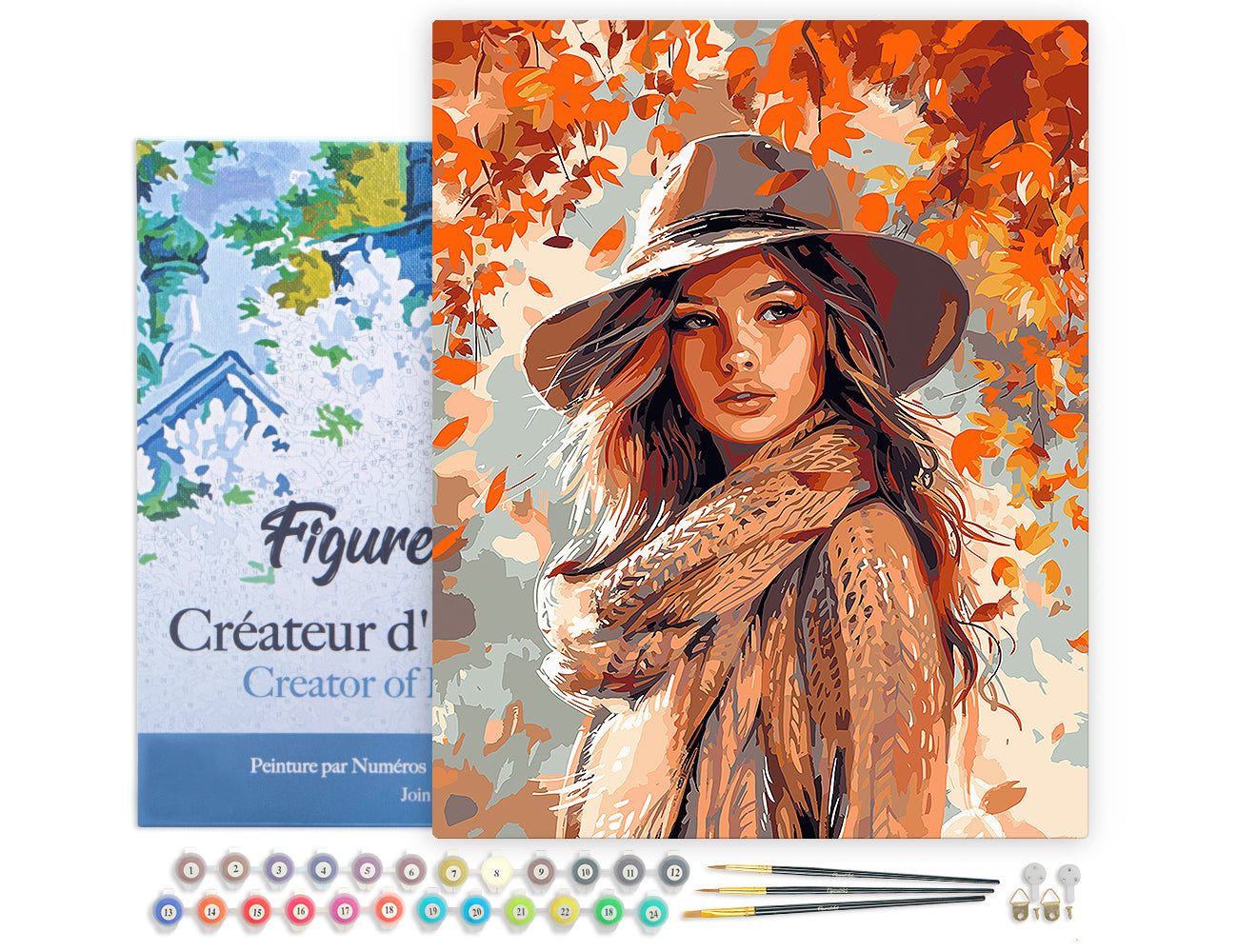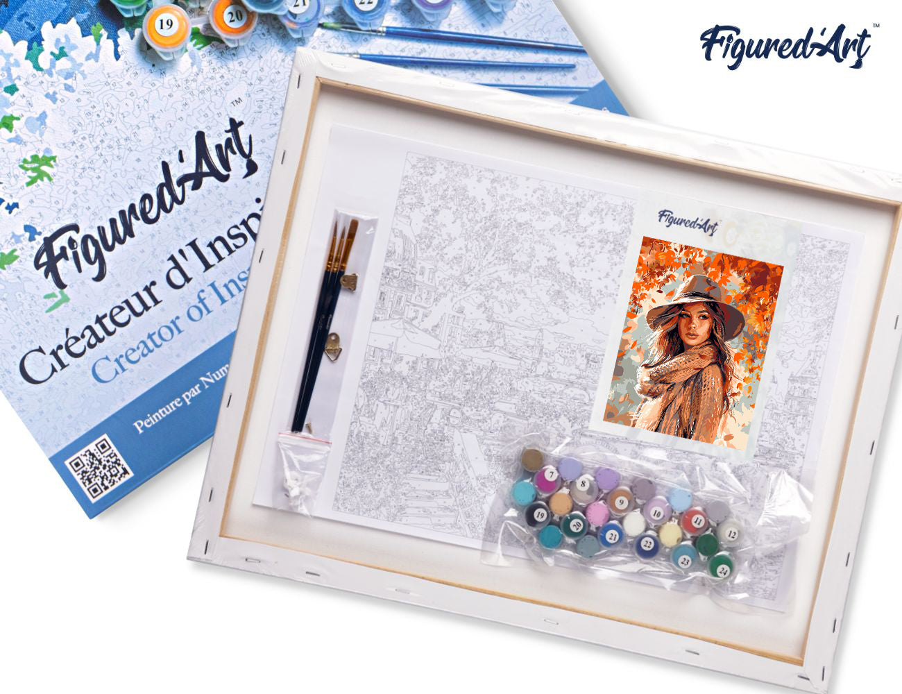 Malen nach Zahlen 40x50cm auf Keilrahmen gespannt Figured’Art Frau im Herbstwind