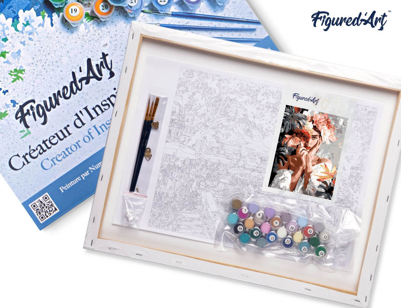Malen nach Zahlen 40x50cm auf Keilrahmen gespannt Figured’Art Porträt eines Mädchens mit Blumen