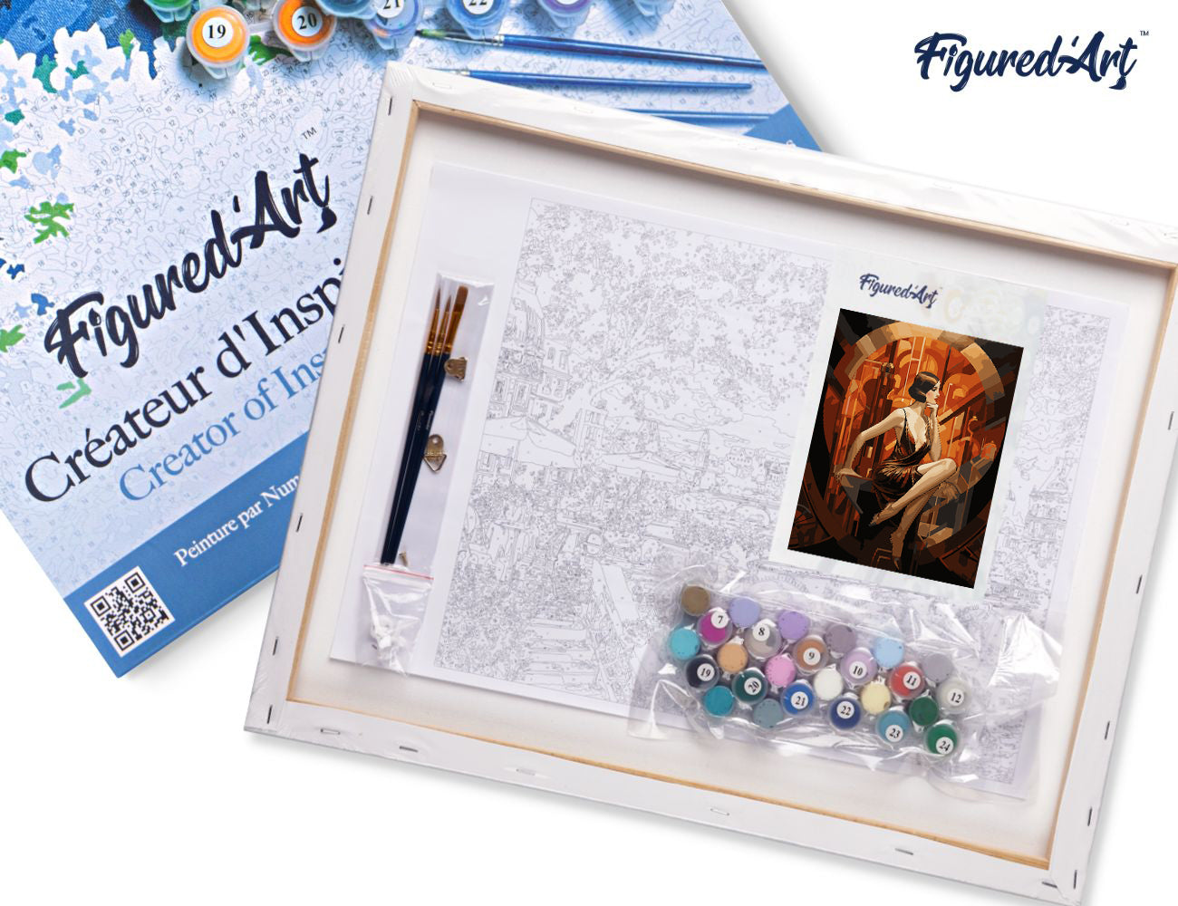 Malen nach Zahlen 40x50cm auf Keilrahmen gespannt Figured’Art Sitzende Art-Deco-Frau