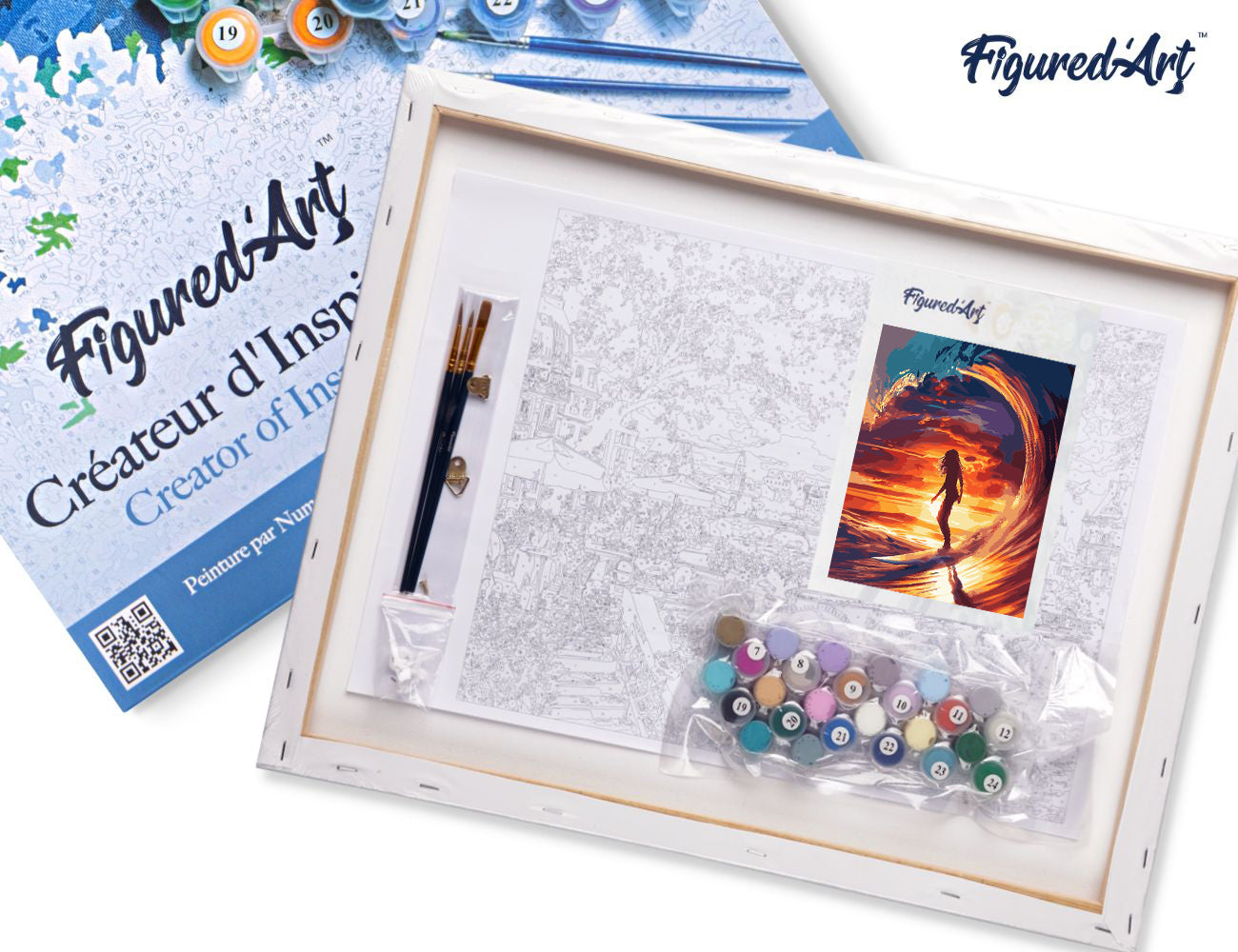 Malen nach Zahlen 40x50cm auf Keilrahmen gespannt Figured’Art Surfmädchen und die grosse Welle