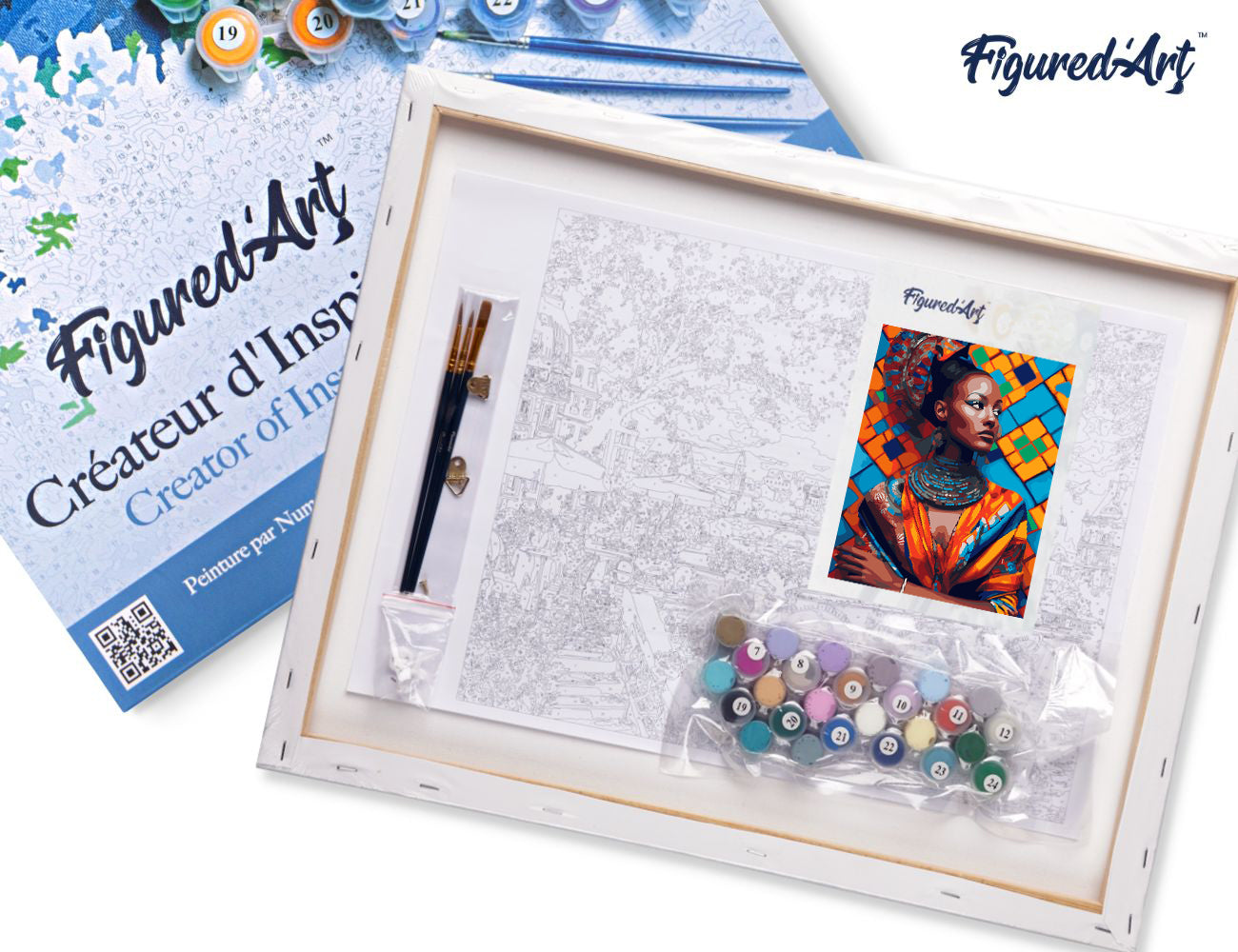 Malen nach Zahlen 40x50cm auf Keilrahmen gespannt Figured’Art Traditionelle afrikanische Schönheit