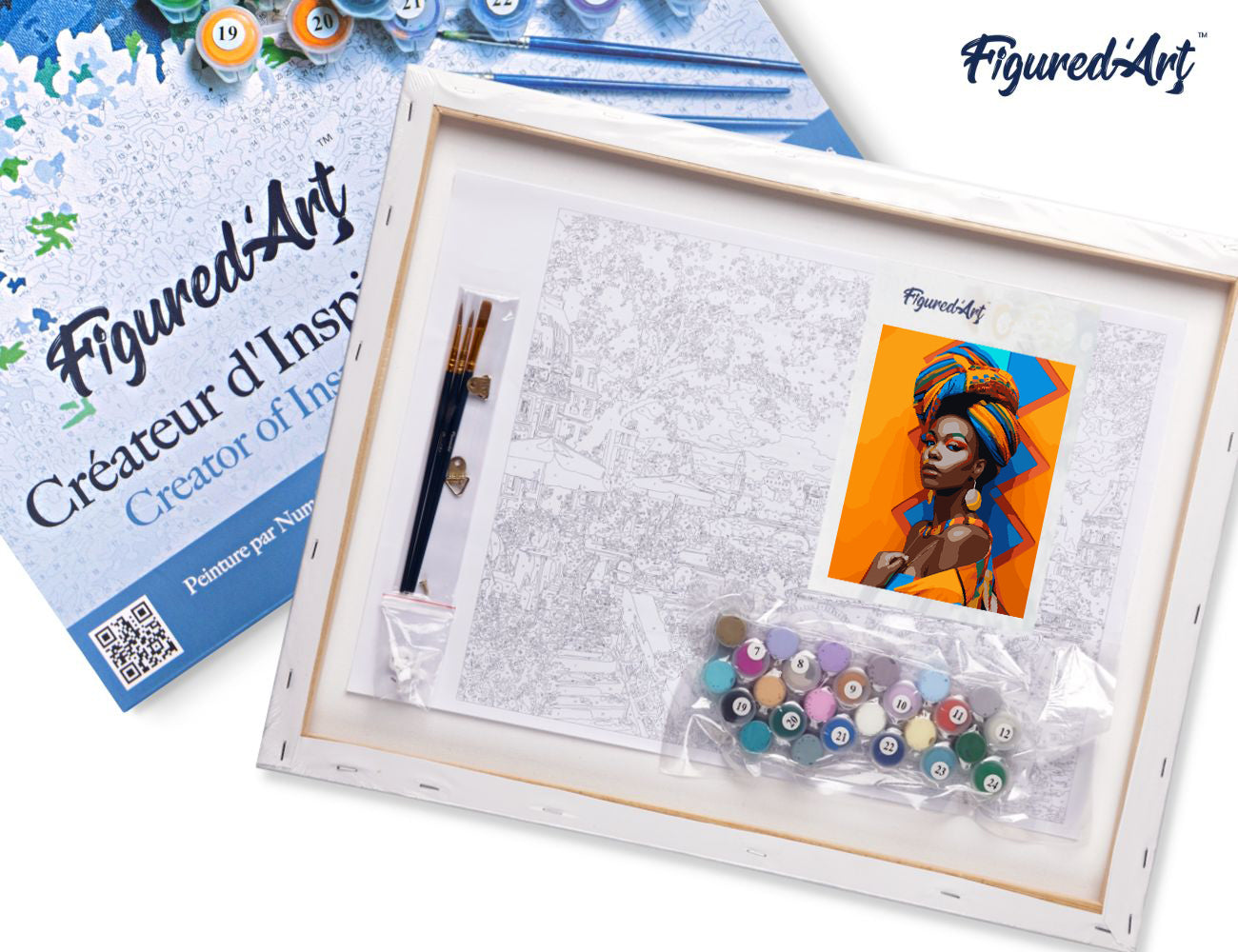 Malen nach Zahlen 40x50cm auf Keilrahmen gespannt Figured’Art Traditionelles afrikanisches Mädchen