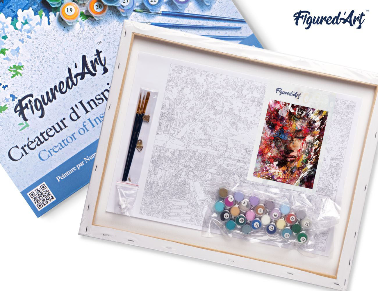 Malen nach Zahlen 40x50cm auf Keilrahmen gespannt Figured’Art Weibliches Gesicht abstrakt