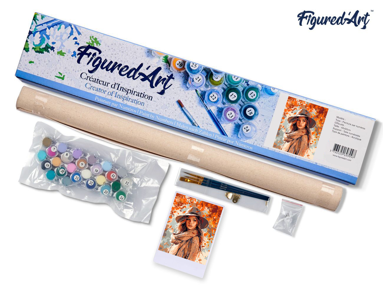Malen nach Zahlen 40x50cm ohne Keilrahmen Figured’Art Frau im Herbstwind
