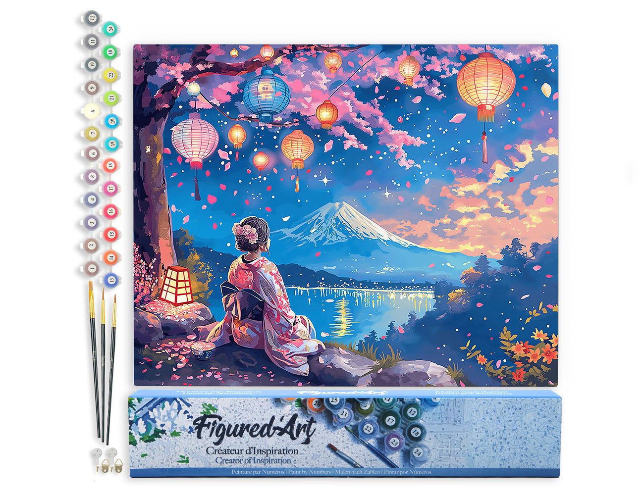 Malen nach Zahlen 40x50cm ohne Keilrahmen Figured’Art Geisha, Laternen und Fuji