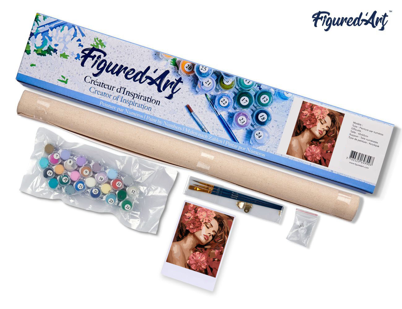 Malen nach Zahlen 40x50cm auf Keilrahmen gespannt Figured’Art Porträt eines Mädchens mit Blumen
