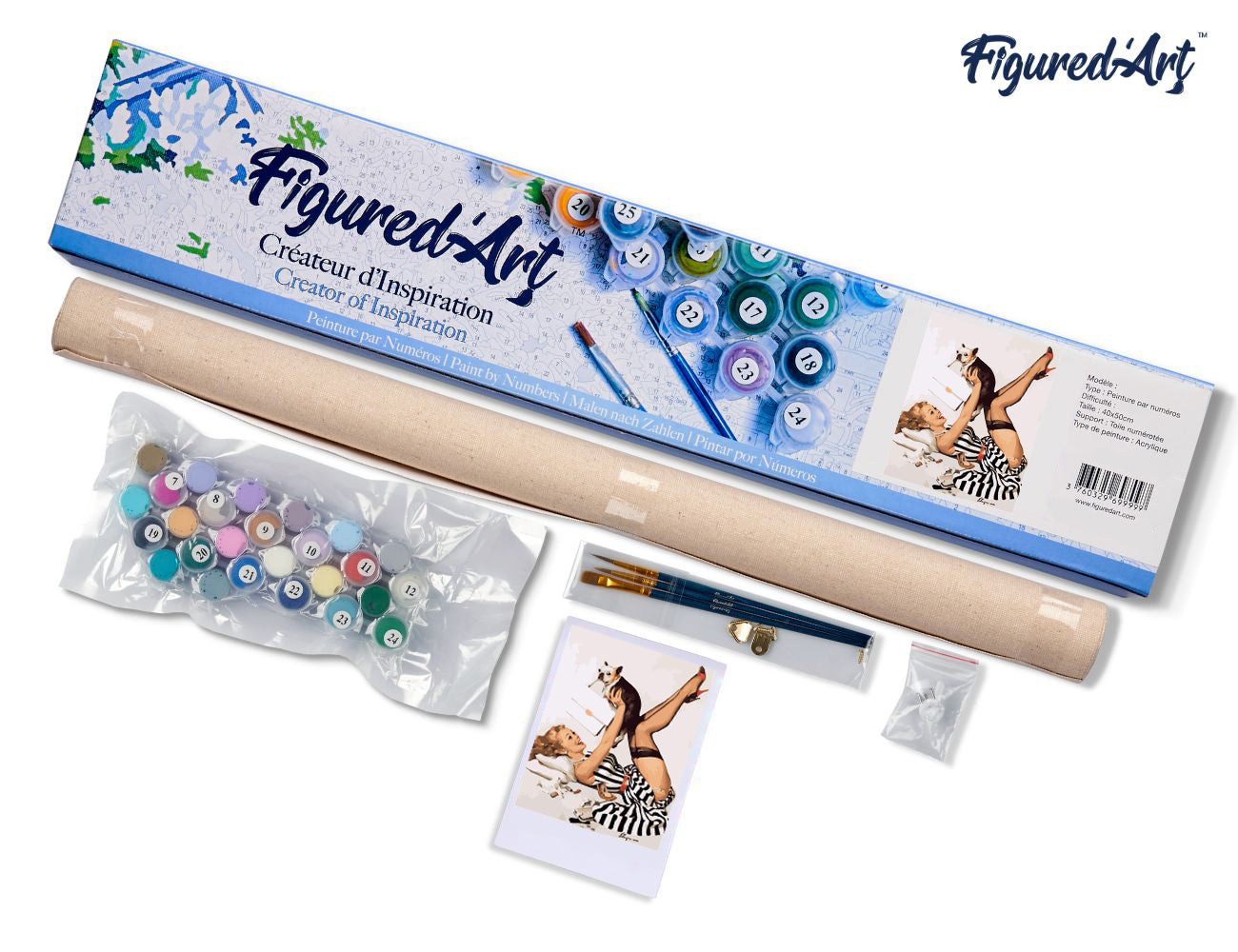 Malen nach Zahlen 40x50cm ohne Keilrahmen Figured’Art Pin-Up-Girl im gestreiften Kleid