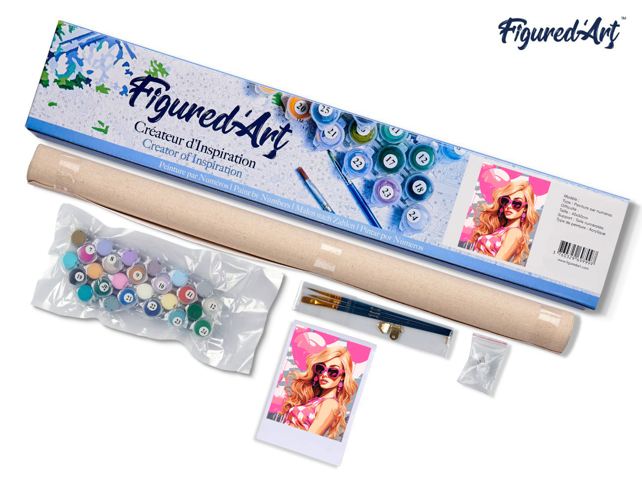 Malen nach Zahlen 40x50cm ohne Keilrahmen Figured’Art Rosa Ballons und die Diva