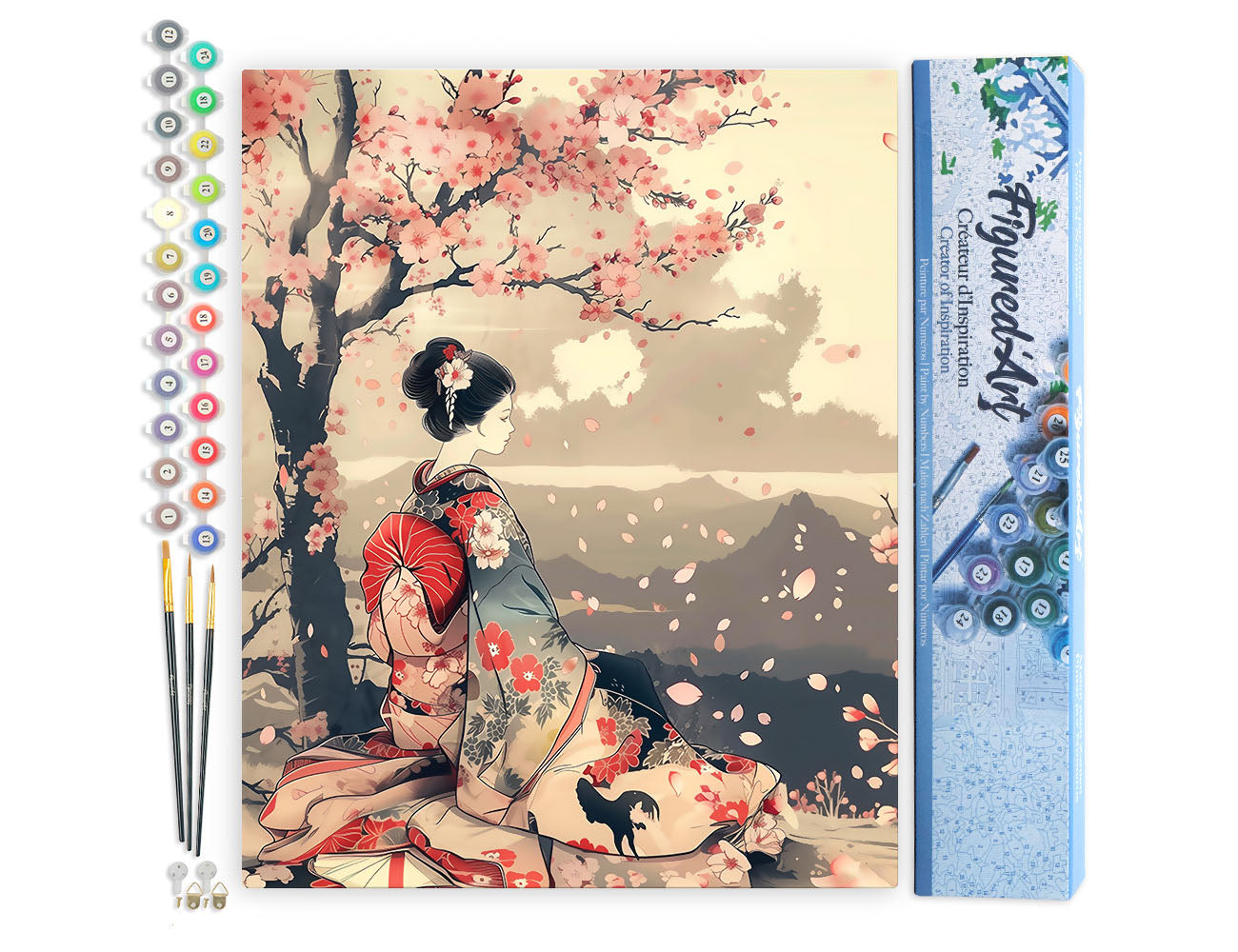 Malen nach Zahlen 40x50cm ohne Keilrahmen Figured’Art Vintage-Geisha unter Kirschblüten
