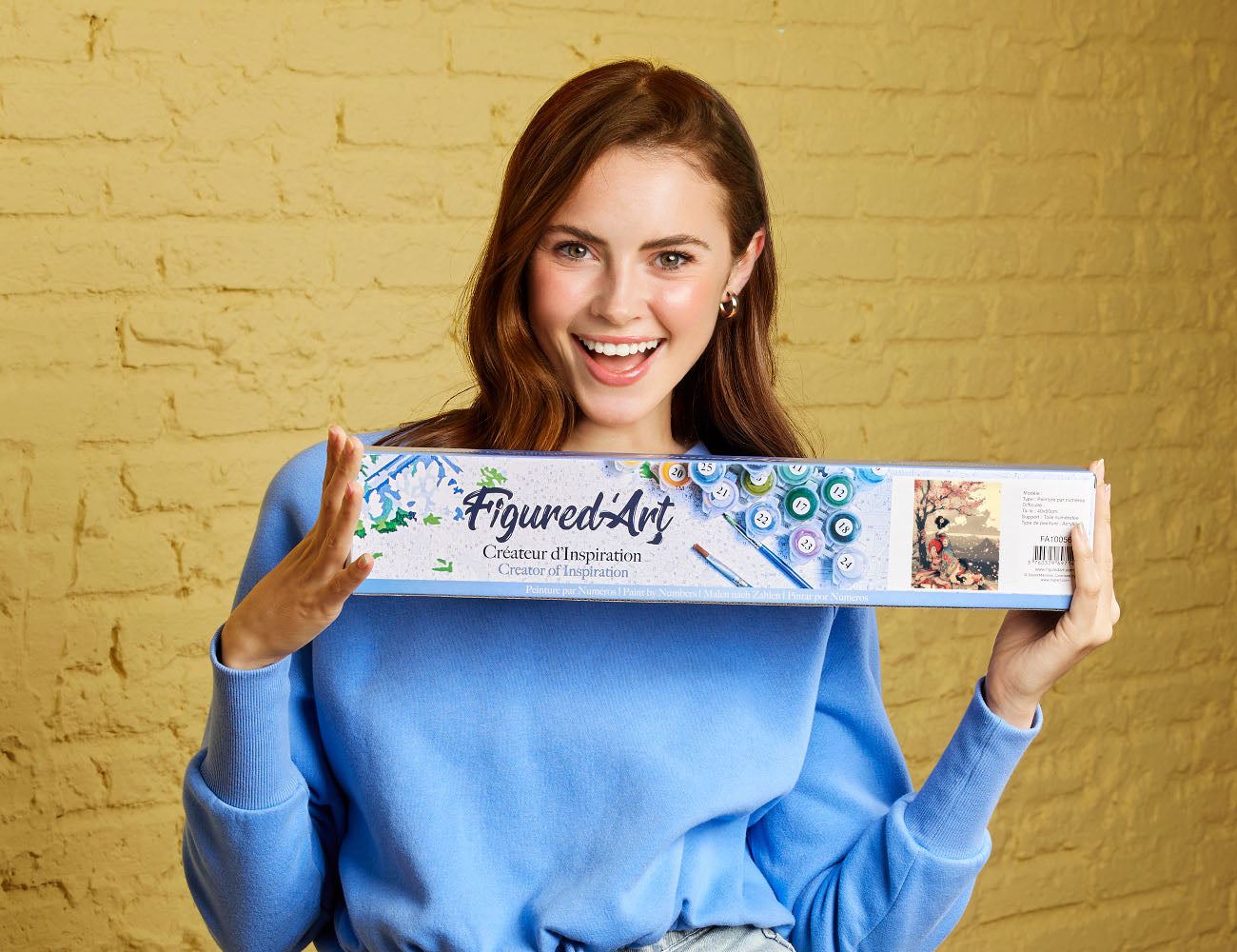 Malen nach Zahlen 40x50cm auf Keilrahmen gespannt Figured’Art Porträt eines Mädchens mit Blumen