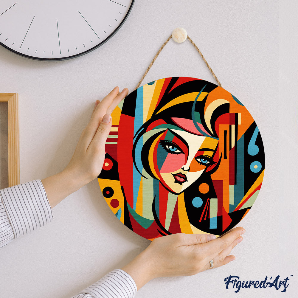 Entdecken Sie entspannte Kreativzeit mit dem Malen nach Zahlen auf Holzscheibe – Abstrakte Frau im Picasso-Stil von Figured'Art. Dieses Set lädt Sie dazu ein, Alltagsstress hinter sich zu lassen und mit minimalistischer Eleganz eine eigene, moderne Dekoration zu erschaffen, die sofort zu einem geschmackvollen Blickfang wird.