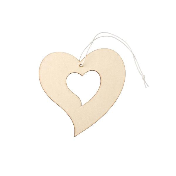 Holzherz offen, mit Hänger, natur, 10x10cm