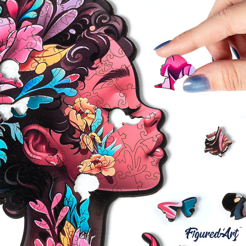 Entdecken Sie das Holzpuzzle 2D Design – Blumiges Frauenporträt von Figured'Art, eine gelungene Mischung aus handwerklicher Präzision und künstlerischem Flair. Jedes Bauteil überzeugt durch natürliche Holzmaserung, passgenaue Formen und eine ruhige, elegante Optik. Die luxuriöse, gravierte Aufbewahrungsbox erhöht den Anspruch und macht das Set zu einem besonderen Geschenk für Kunstliebhaber und Puzzle-Fans. Ideal für gemütliche Abende zu zweit oder alleine, eine stilvolle Geschenkidee.