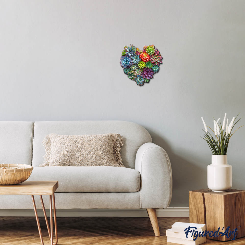 Holzpuzzle 2D Design – Herz aus Sukkulenten