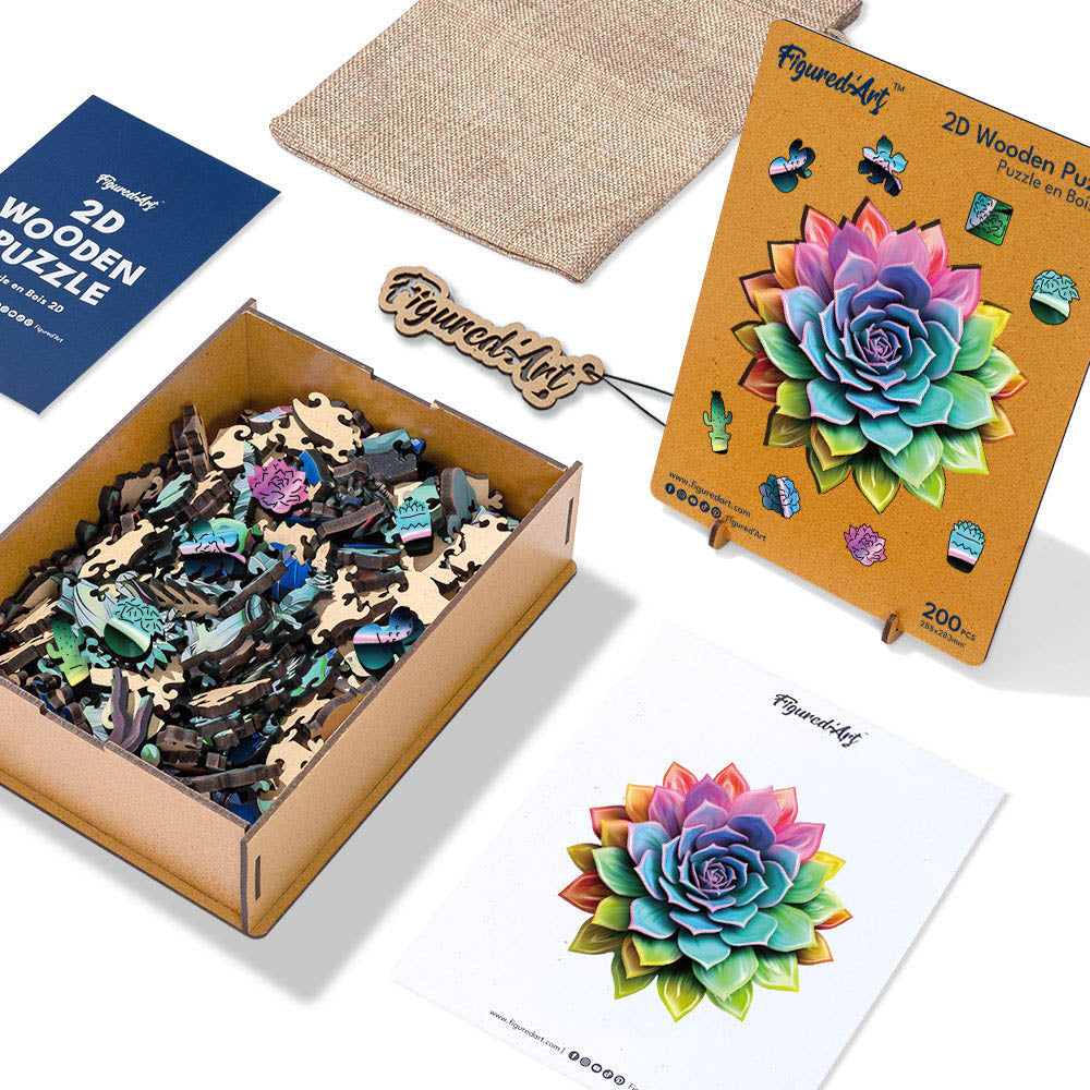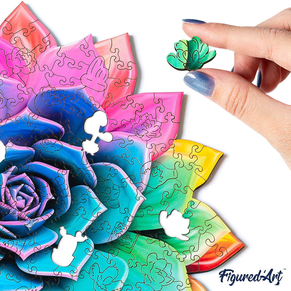 Holzpuzzle 2D Design – Regenbogen-Sukkulente