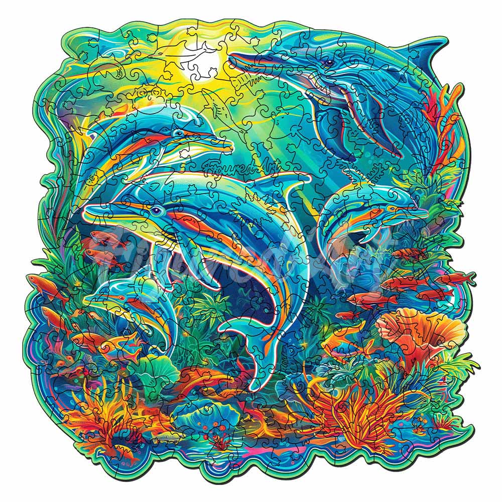 Holzpuzzle 2D Design – Delfine und Korallenriff