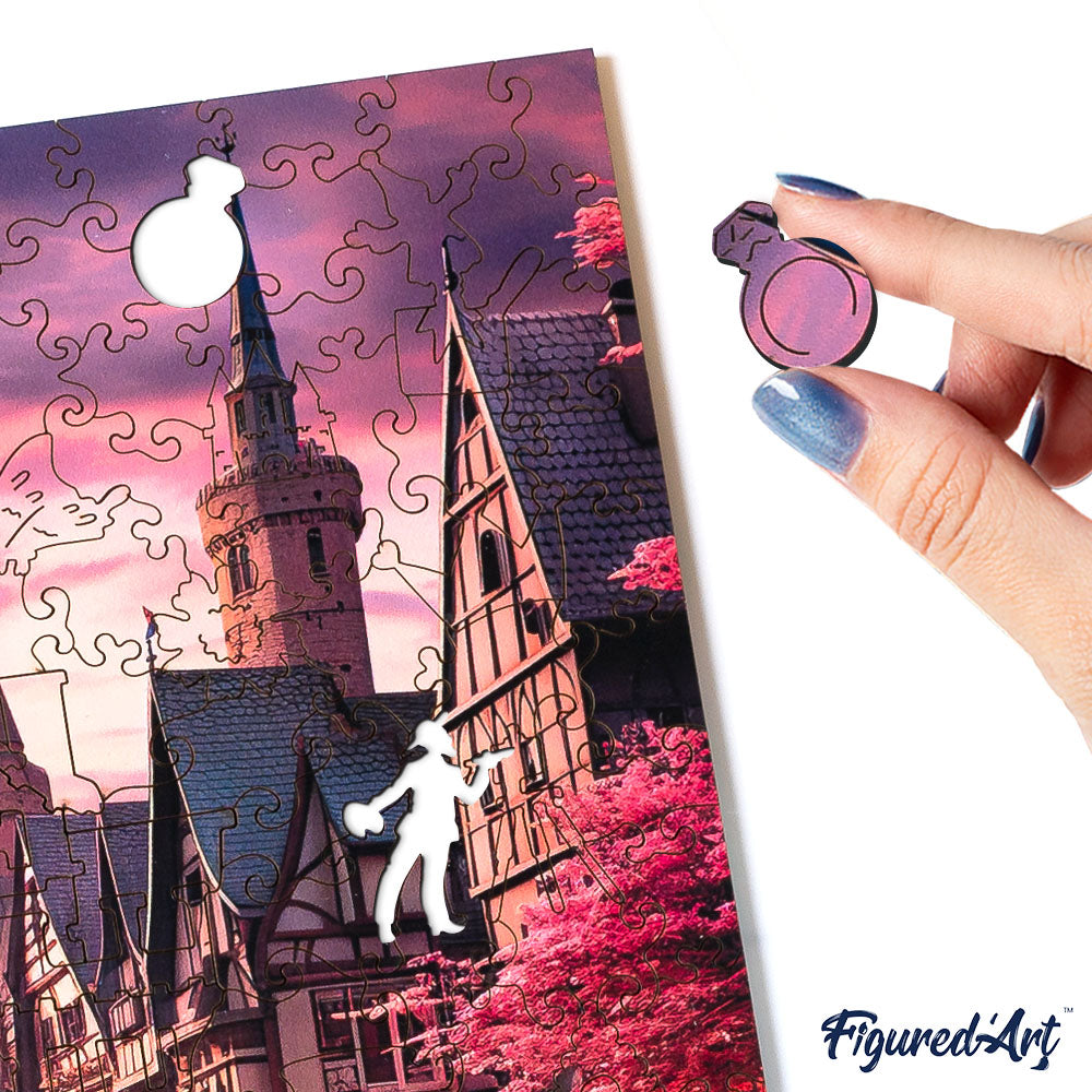 Dieses exklusive 2D-Holzpuzzle vereint Kunst, Magie und Entspannung in einem eleganten Design. Jetzt bestellen und das Märchenhafte Dorf von Figured'Art erleben.