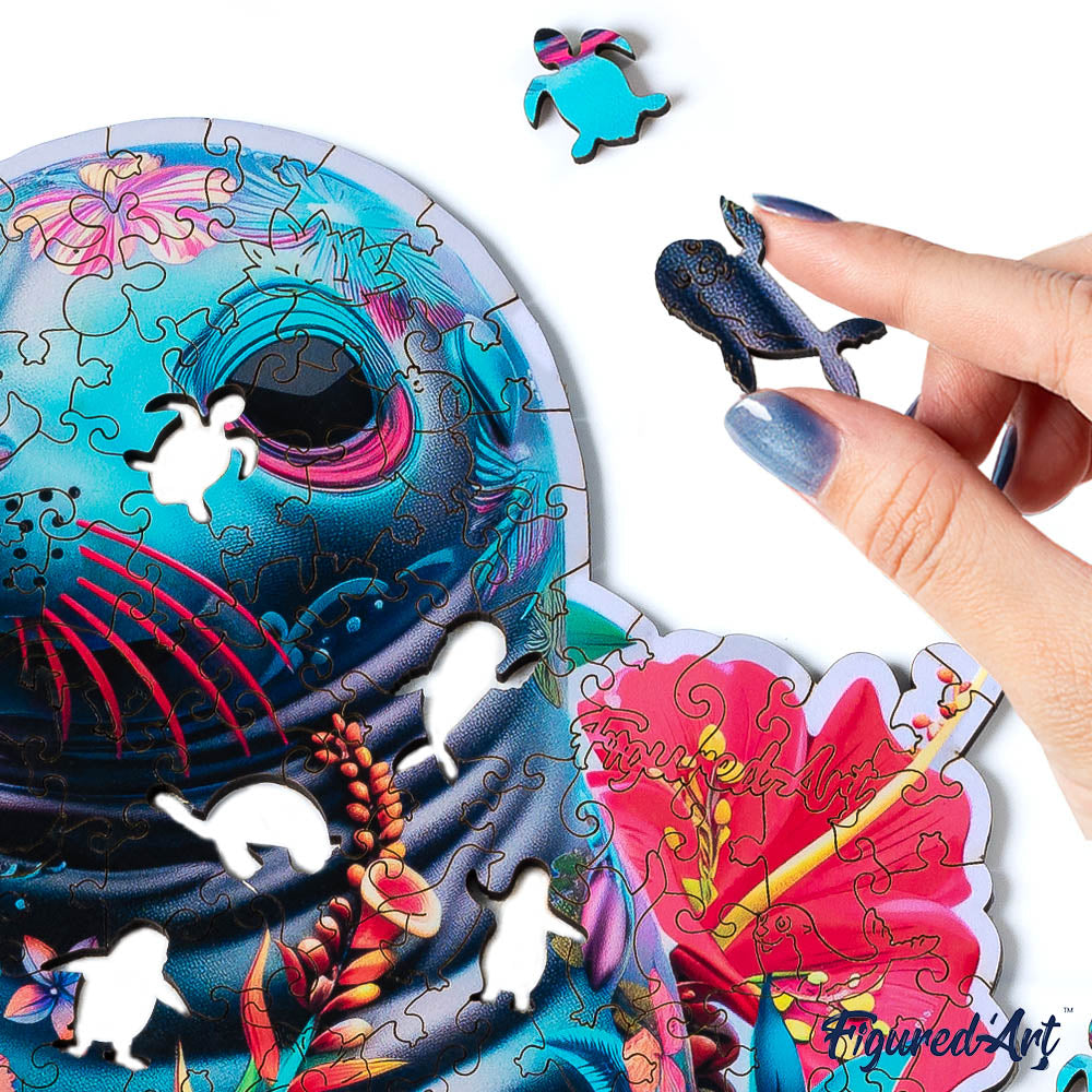Entdecken Sie das Holzpuzzle 2D Design – Robbe und Blumen von Figured'Art. Dieses originelle Premium-Puzzle verwandelt entspannte Freizeit in eine stilvolle Kunsterfahrung. Jedes sorgfältig gestaltete Teil bietet einzigartige Formen und eine ästhetische Silhouette, während die gravierte, luxuriöse Aufbewahrungsbox das Gesamtpaket elegant abrundet. Hergestellt aus hochwertigem Holz, verspricht es stundenlangen, ruhigen Puzzle-Spaß mit elegantem Flair. Sicherheitshinweis: Nicht geeignet für Kinder unter 10 Jahren; verwenden Sie es unter Aufsicht Erwachsener.