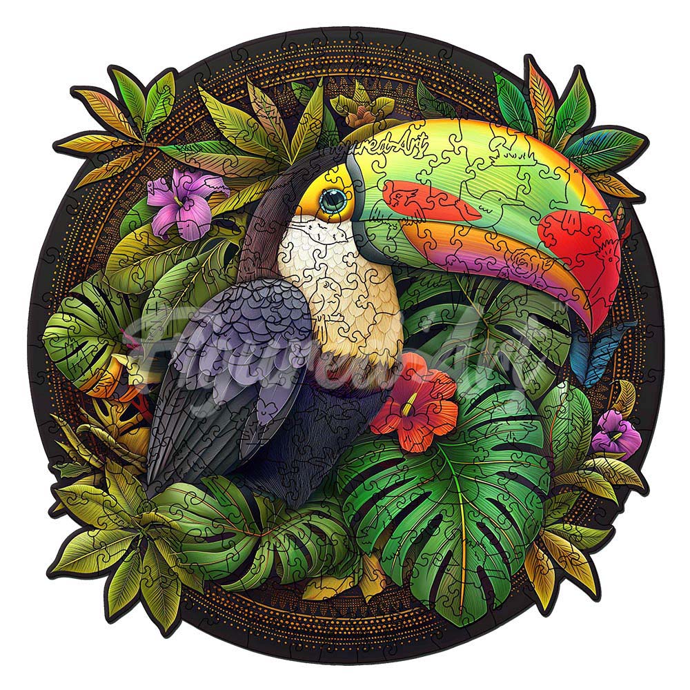 • 2D-Holzpuzzle mit tropischem Tukan-Design.