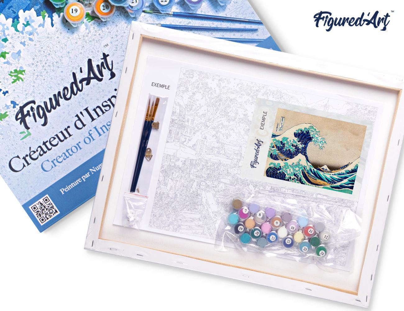 Malen nach Zahlen 40x50cm auf Keilrahmen gespannt Figured’Art Die grosse Welle von Kanagawa von Katsushika Hokusai