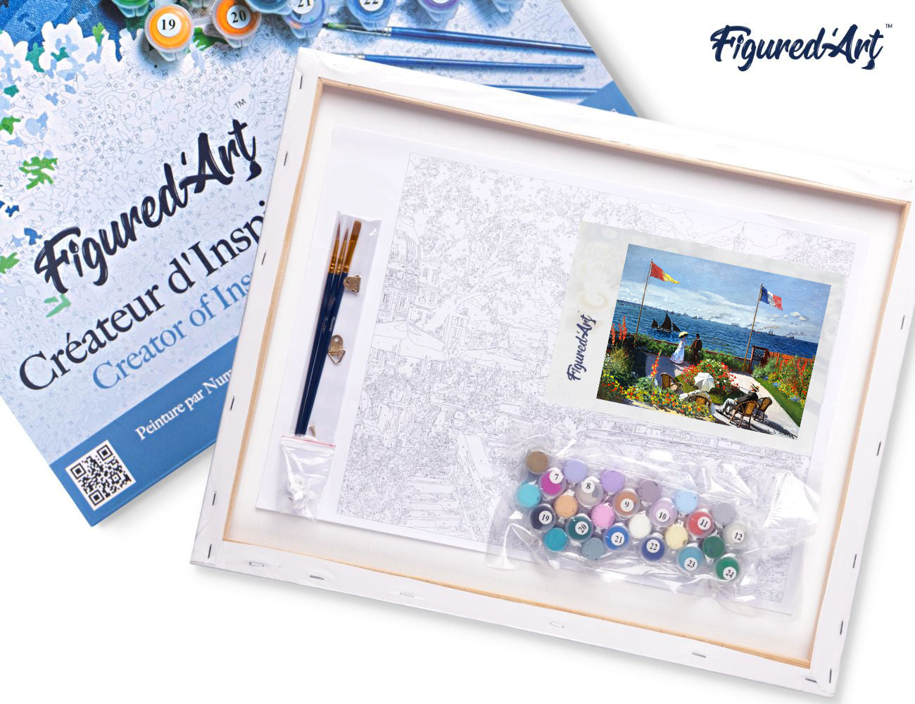 Malen nach Zahlen 40x50cm auf Keilrahmen gespannt Figured’Art Die Terrasse am Sainte Adresse – Monet