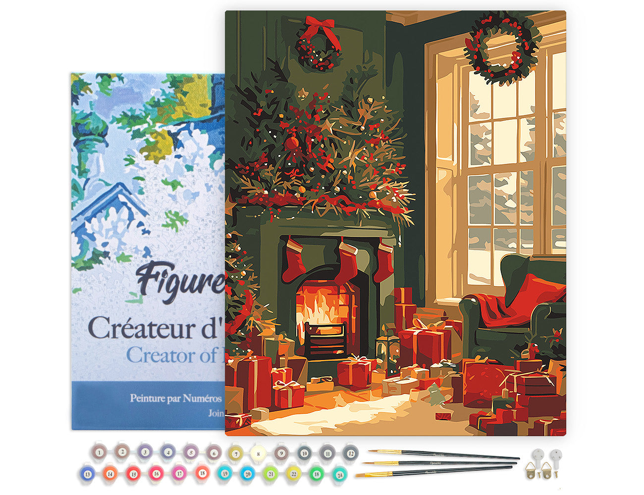 Malen nach Zahlen 40x50cm auf Keilrahmen gespannt Figured’Art Kaminfeuer zu Weihnachten